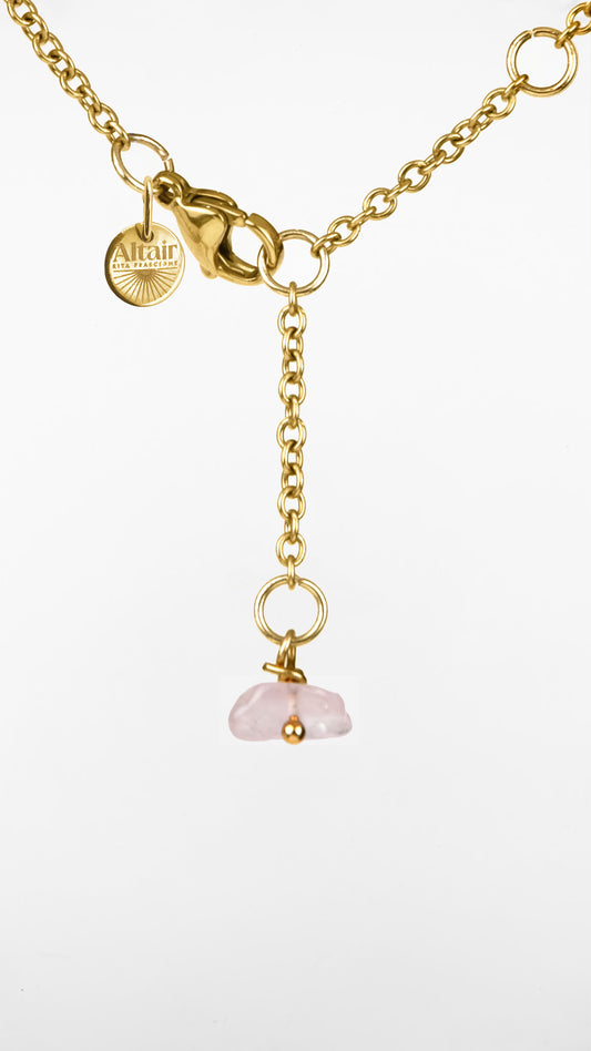 Cygnus, Girocollo Acciaio dorato e Quarzo Rosa