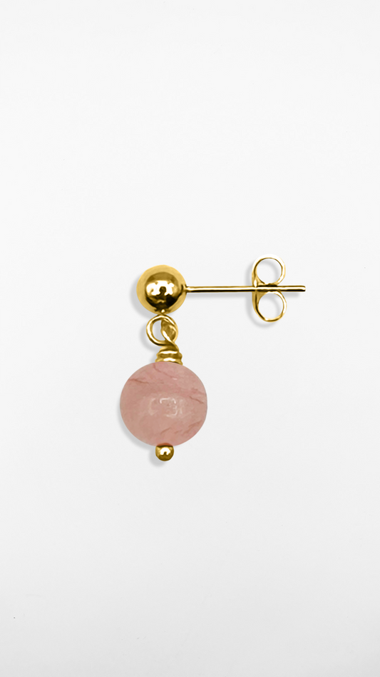 Sirius, Orecchini corti Quarzo Rosa e Acciaio Dorato